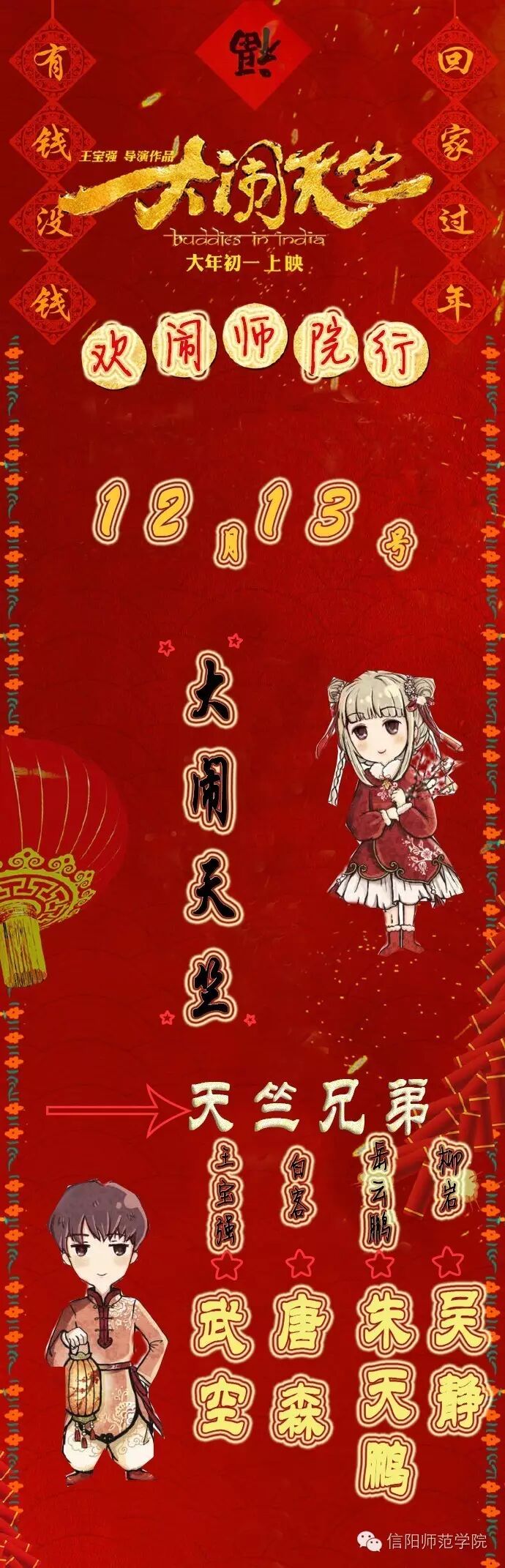 王宝强导演,带着他首次导演的电影《大闹天竺》,来师院分享他的励志故事。那句“不抛弃,不放弃”的经典台词曾经激励了无数人走出困境。