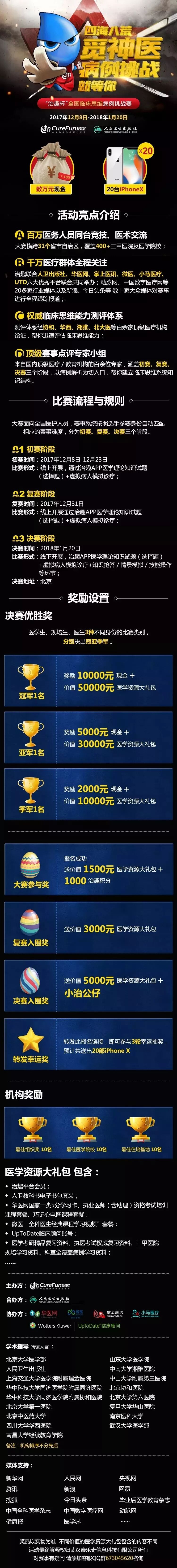 “治趣杯”全国临床思维病例挑战赛正在如火如荼的进行中,我们横跨全国31个省市自治区,覆盖300+三甲医院及医学院校,汇集数百万医务人员同台竞技,进行医术交流,我们邀请了最权威的专家教授及机构,准备了丰厚的奖品,万事俱备,只差一个你啦,赶紧来和全国的医护人员一起PK医术吧~