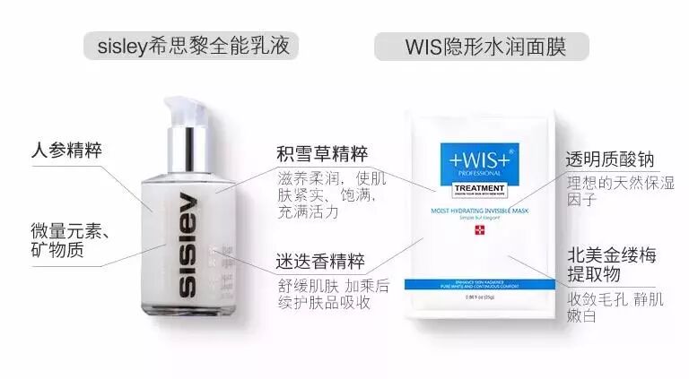 WIS研发团队在考虑了玻尿酸超强的吸水能力的同时,也加入了植物精粹——积雪草和迷迭香,这两种成分是Sisley希思黎全能乳液中的主要成分,三者的结合,可以让肌肤由内而外焕发新活力。