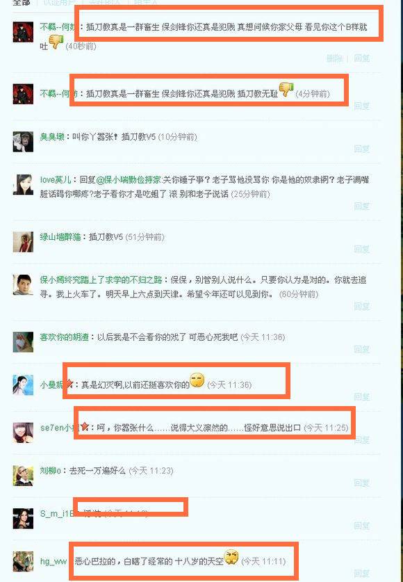 保剑锋插一刀,引起众怒:“真是幻灭啊,大义凛然的好意思说出口?插刀教无耻,真是瞎了18岁的天空。”