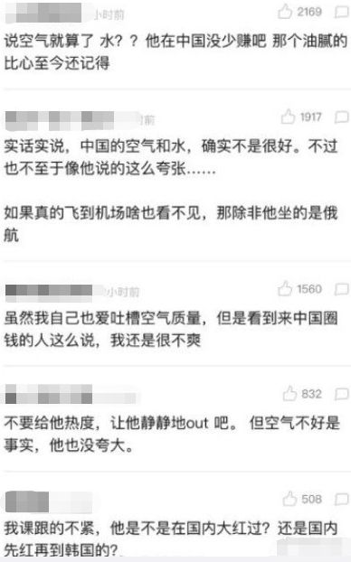 1月23日晚,黄致列参加韩国某综艺,在节目里他吐槽中国空气、水质非常糟糕。
