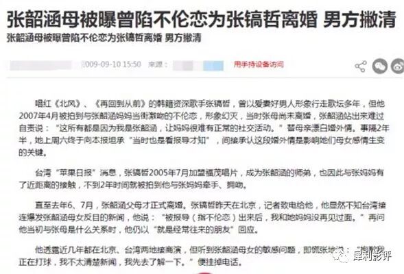 当时正是张韶涵人气最盛的时候,据当时的报道称,当时张韶涵的妈妈还没离婚,也就是说两人是“地下情”,这样的画面让张镐哲“好男人”的形象尽毁。