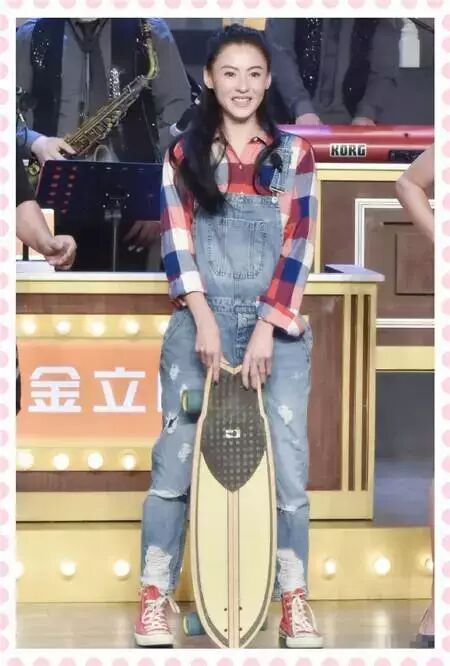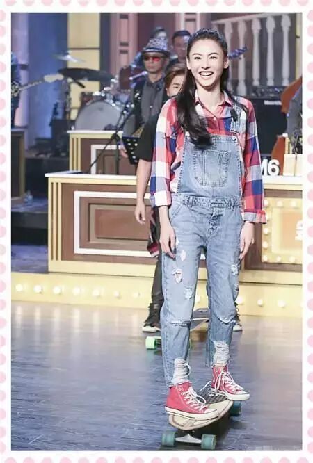 而同样是一件背带裤,张柏芝倒是穿的少女感满满呢!个性的破洞设计展现不羁的个性,看起来十分的青春。