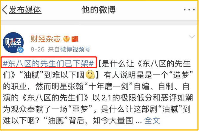 张翰新剧被下架,可他缺的课必须补完 人物people 内地男星 2022-10-01 22:58:23 534 创作不易,用心坚持,欢迎请BaGua喝几杯爱心咖啡!打赏并支持本文 打赏并删除本文 Sayings:今天想错峰聊聊张翰,和他引起巨大争议的自制剧,《东八区的先生们》。最新的消息是,几大主要视频网站,都下架了这部剧。算是对全网铺天盖地负面反馈的回应。这部剧的评价我不需要多说,近期罕见。“油到我的眼睛”,是共识。豆瓣电视剧排行榜倒数第一,20 万人评分,97 % 打出了一星差评。——大家有眼睛,大家用手指投票。但我想讲的,不是下架这件事。我更想讲的,是张翰用 10 年“精心”准备和创作了这部剧。十年,创作出了这样的男性形象。更离谱的,是十年,创作出了这样的女性形象。充斥着偏见、歧视、傲慢,和令人吃惊的无知。我在写这篇文章时,很多次都觉得生气和不解。明明都是常识,比如,不要道德羞辱一个女性,可,看到这部剧,看到这十年,这么大的制作团队,没有一个人,觉得有问题。最该是常识的事情,成了最无知的事情。这中间一定有什么出错了。一定。所以今天,我决定写这篇文章。告诉张翰,告诉和张翰一样无知的人,《东八区的先生们》下架了,但你们缺的那一课,必须要补上。 1 张翰们眼里吸引女性的“霸道”:入场要乘直升飞机:对视是能把人“迷死”:“真男人”是要一把抢过女人酒杯的:张翰们眼里缺了的:人与人交往,前提是,互相尊重。配图:这是明道演的霸道总裁。和不认识的女主问路,会说,“不好意思,请”。 2 张翰们眼里的“男性幽默”:男主和女领导谈工作,领导客观评价:“你俩只是各有所长”。他嬉皮笑脸地接话:“我怎么觉得还是我的比较长。”张翰们眼里缺了的:玩笑有底线、有界限,才叫“玩笑”。否则,有个专业名词,叫“职场性骚扰”。 3 张翰们眼里的“怦然心动的浪漫”:他设计了一个“浪漫桥段”,他闯入一个陌生女性的酒店房间。以为对方第一反应,是会注意到自己的几个关键词:“肤色白皙、身型优异、斯文败类。”张翰们眼里缺了的:我真想喊一句,他是眼瞎了吗?这是一个真实案件。2021年,上海某日凌晨, 博主@fiore花花 在自己的酒店房间发现有位陌生男性闯入后,受到严重惊吓,大声尖叫后男子逃走,她立刻报警和向酒店求助,当晚一夜未睡。此事的结果是:涉事男子因猥亵他人被处以行政拘留 5 日的处罚。 4 张翰们眼里的“尊重爱护女性”:他“英勇”拯救了她。一个女性摔倒了,在平地摔的,男主角扶她时,扯住了她的内衣肩带。甚至编剧还加了一个令人不适的后续。张翰们眼里缺了的:她不舒服。非常不舒服。 5 张翰们眼里“浪漫的吻”:这是这一幕的几个信息重点:意外,第一次见面的女性,没经过同意。张翰们眼里缺了的:读者@北碚的故事:“我们在一起后的第一次见面。分别时,他很郑重地看着我说,我想做一件事。我纳闷地问他什么。他说我可以吻你么?”征求同意,是第一步。 7 张翰们眼里的“女性主动”:描写一个女性主动表白:张翰们眼里缺了的:这也是一个女性主动表白的片段。来自《机智的医生生活》里的秋敏河医生。“我喜欢你。我不是为了得到你的回应才说的,我只是想把我的心意告诉你。” 8 张翰们眼里的“男女交往法则”:确定恋爱关系后,男生给女生立了个规矩,不许见异性朋友。这是理由:“我只是觉得女人出门在外,应该学会注意分寸。”张翰们眼里缺了的:如果出门在外要注意社交礼仪,如果这叫“分寸”,那是人应该要掌握的“分寸”。而不是用“分寸”,限制、规训女人。 9 张翰们眼里的“女性财富”:当一个男性看一位女性买了奢侈品包,他的第一反应:一定不是花自己的钱。张翰们眼睛里缺了的:引用下读者@千千的话:我买包,是对我自己努力工作的奖赏。 10 张翰们眼睛里的“女性友谊”:这是他写出来的女性聚会:互相攻击容貌、年龄,充满敌意。张翰们眼睛里缺了的:这也是一场女性聚会,她们能由衷欣赏彼此的美。(图源:《御赐小仵作》) 11 张翰们眼睛里的“女性身体”:“美女,你是不是很能吃辣?怪不得你的身材这么火辣。”张翰们眼里缺了的:读者@az 分享的故事:“聚会上,一个男生指着酒瓶说:这个酒瓶的造型很性感,曲线就像是女人的身体一样,很美。他立刻打断他:你这个比喻也太糟糕了,这样不尊重女性。” 12 张翰们眼里的“月经”:“受伤了。”“女人啊,受伤之后是最可怕的动物,万年流血不死的,是不是?”张翰们眼里缺了的:读者@毛毛的故事,女性来月经,是值得庆祝的。“我第一次来初潮,家里人为我庆祝了一番。妈妈说:恭喜我长大了。我从不觉得月经是羞耻的。它是每个女生都会有的正常生理现象。也是令人敬畏的,因为它代表着能够孕育一个生命的能力。” 13 张翰们眼里的“爱情”:“下雨的夜晚,冷酷的铁。”张翰们眼里缺了的:当一个男性感受到美好的爱情,他会发自内心地赞叹。就像大张伟提到自己的太太:“一见到她之后,就感觉整个春天的花都开了,就感觉整个世界都是亮的。” 14 张翰们眼里的“智慧”:主角在光线极差的酒吧看书。这是编剧认为“非常有意思”的诗:“被你深深地吸引住的我,无暇顾及于此,便在你的带领下,静静走向了你的深处。”张翰们眼里缺了的:人,越智慧,越谦卑,越承认自己的无知。 15 张翰们眼里的“为国争光”:这里的剧情是,张翰给正在向外国籍女