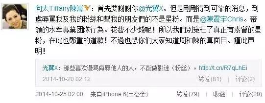 但向太却丝毫不领情,后来转发粉丝微博的时候,一边向有素质的星迷道歉,一边却暗指整件事都是陈震宇在背后策划的,让大家认清“周星驰和陈震宇的真面目”