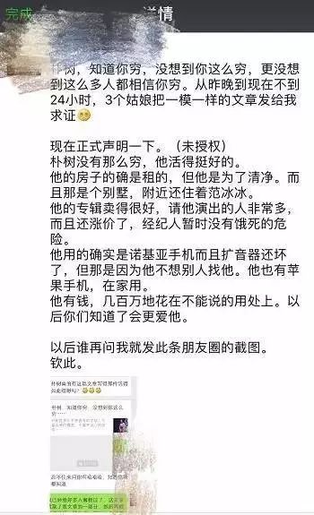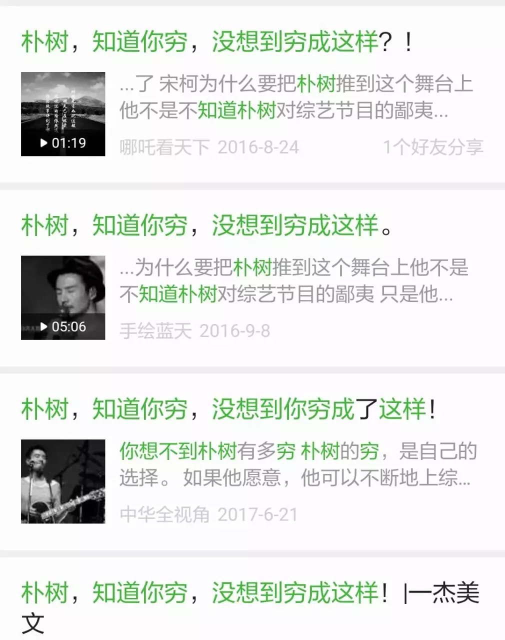 当晚,一篇名为《朴树,知道你穷,没想到穷成这样》的文章在朋友圈疯狂刷屏。