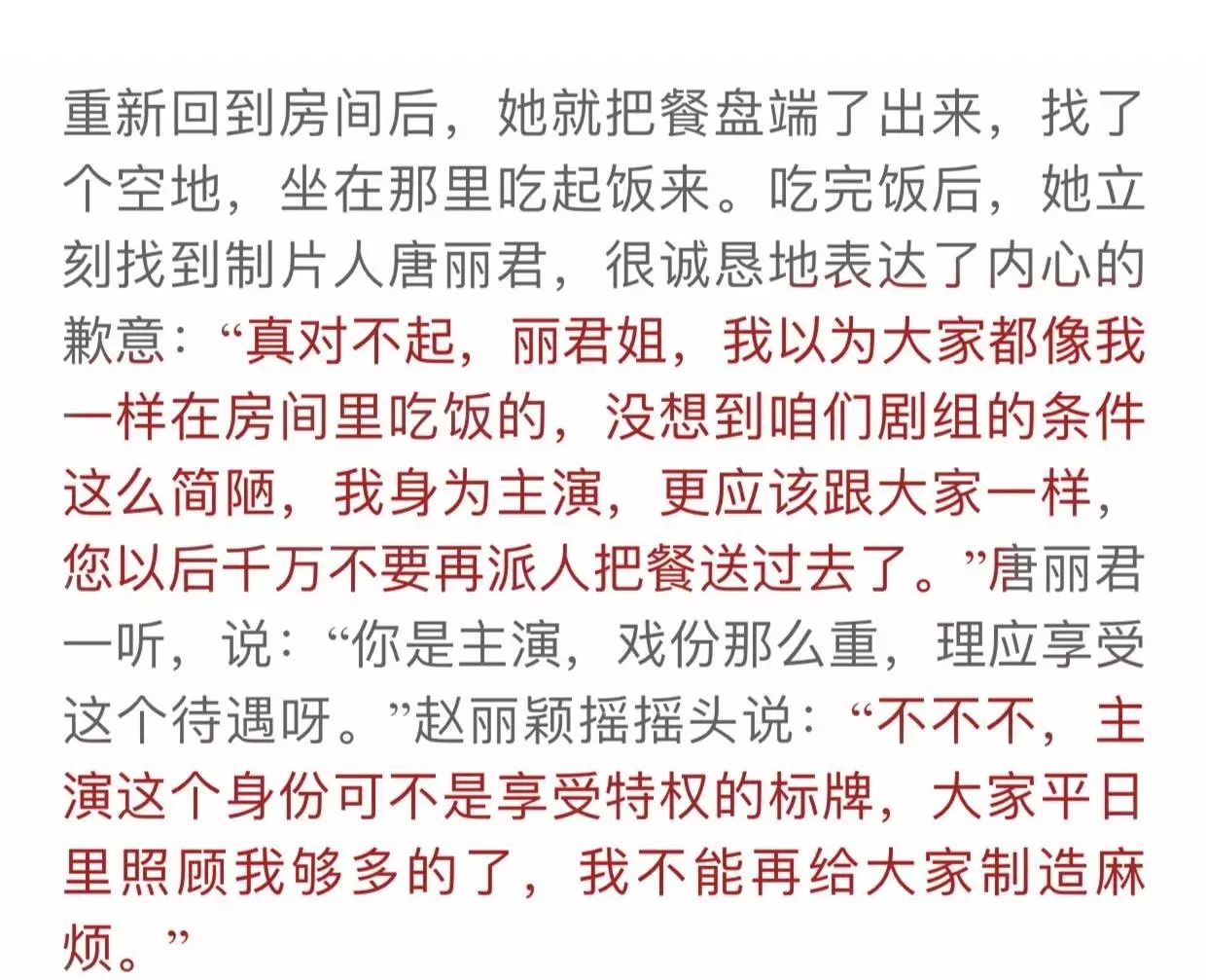 作者就像赵丽颖的贴身助理一样,连她当时什么表情,说了什么话都一清二楚,比如: