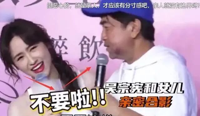 按说该是女儿非常尊重的人,可是看到舞台上生父对自己做的事确实让人气愤,还有一次在红毯上,父女俩一起出现,当时吴姗儒穿了件红色的抹胸礼裙,当时吴宗宪担心女儿走光,做父亲的都这样,都担心女儿有危险
