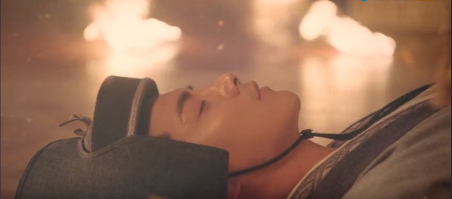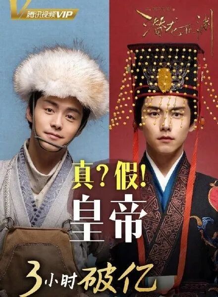 单独拎出刘协的剧照来说,龙头在上,位置端正,在人物头冠的左侧。在剧照的最下方,有一虚一实两条龙尾,似乎隐喻着刘协/刘平的双重身份↓