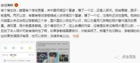 这位游戏主播,在其社交平台上爆料后,立即被众多不明真相的营销号转载。“李敏镐被富婆包养”的谣言开始在网上发酵。后来,作为国内知名编剧,早就惹怒肖恩肖的汪海林,也转载了该内容,并在事件热度升级时称李敏镐为“鸭子”。