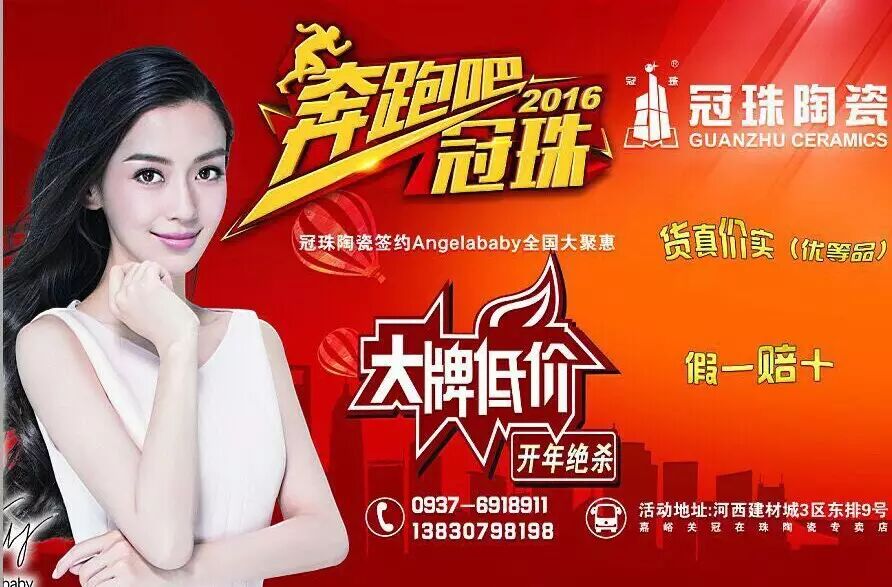冠珠陶瓷签约Angelababy推出全国大钜惠活动