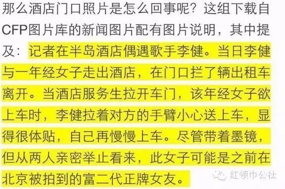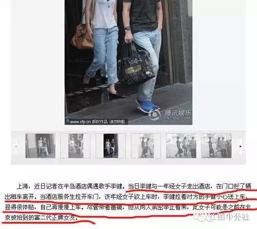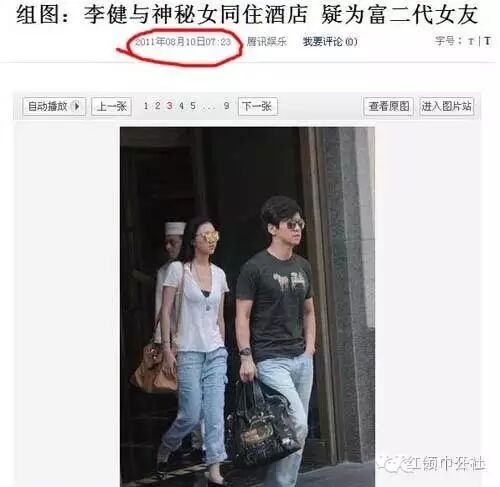 这张照片的消息源是2011年8月10日腾讯娱乐发布的一条图片新闻:《李健与神秘女同住酒店 疑为富二代女友》