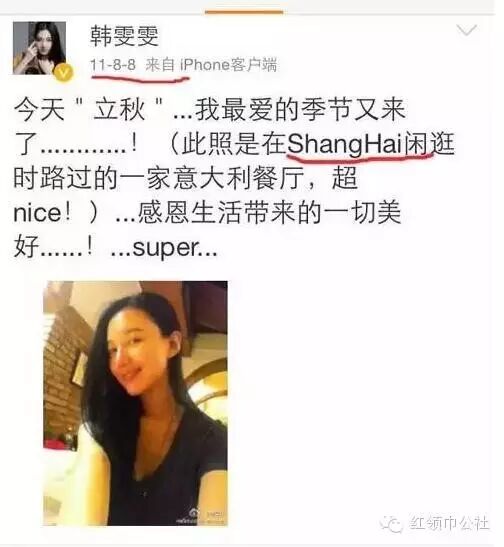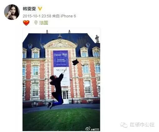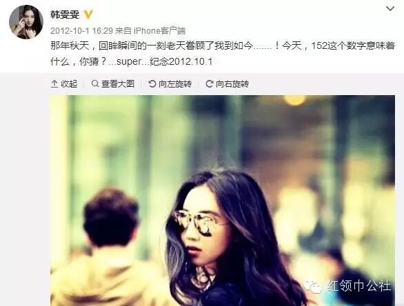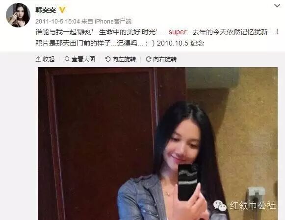 2011年国庆韩雯雯发了一条微博:一年前的今天,生命中最美的意外……你懂de……纪念。