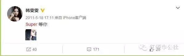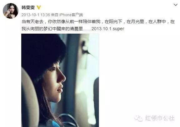 回溯韩雯雯的微博,最后一次文中出现super是2014年2月。
