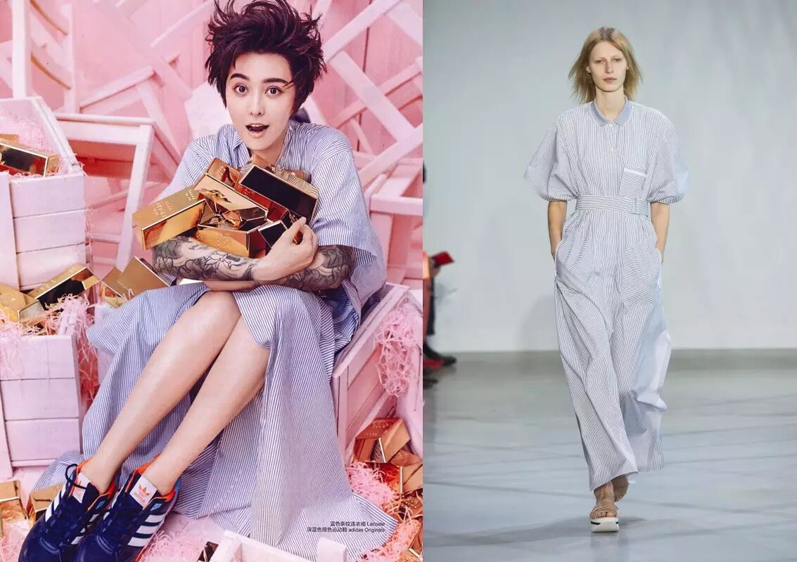 你或许已经习惯范爷在各种红毯上的惊艳亮相,无论是优雅复古的礼服,或是利落的裤装,她都能变化出万千造型,她是毋庸置疑的“红毯女王”。当然,女王也有调皮小女人的一面,休闲的细条纹连衣裙,随性抓起的短发,甜粉背景色的映衬下,流露出的,是如初春少女般的气息。