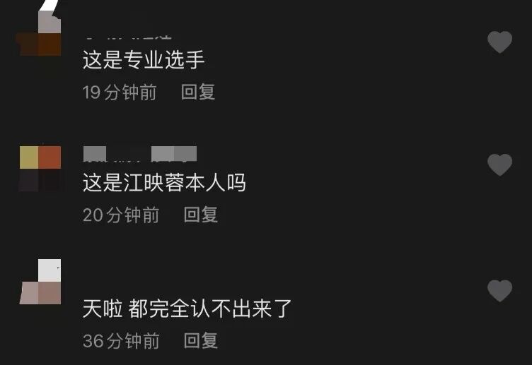 有网友评论说江映蓉的卡点舞是专业选手的水平,还有网友可能因为江映蓉模样变化太大,直呼“这是江映蓉本人吗?”,更有网友称完全认不出来了。