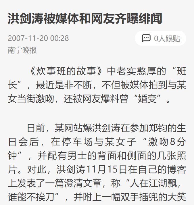 因为这则丑闻,洪剑涛曾经憨厚老实的荧幕形象也一去不复返。