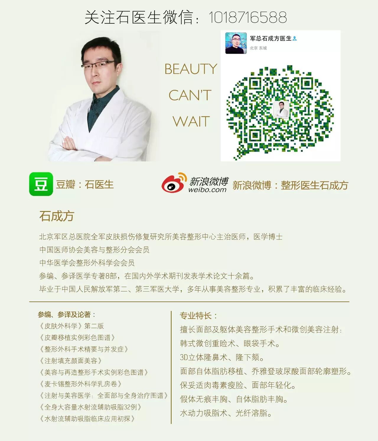 石成方,医学博士,北京三甲医院整形主治医师 【Dr.石 医美微观点】热辣话题、美容外科皮科、微整形、医学文绣【Dr.石 案例分享】新鲜案例真拍实照 【Dr.石 美丽任务】优惠活动每周放送(限定名额、条件) 经常关注限...