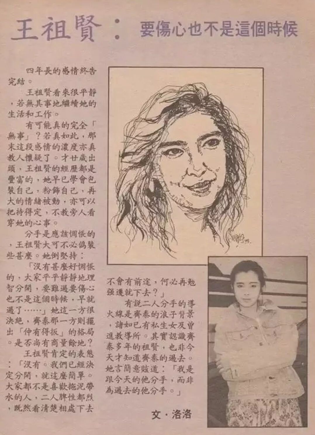 之所以分开,也不仅仅是因为被齐秦隐瞒,王祖贤感觉心灰意冷。