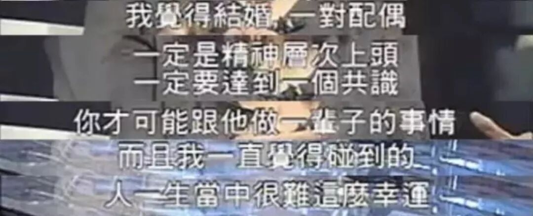 对王祖贤来说,结婚是要达到精神层次上的共识的,不是那么轻易就可以结婚的。