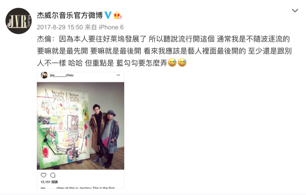 2017年周杰伦官宣开通Instagram时的发言