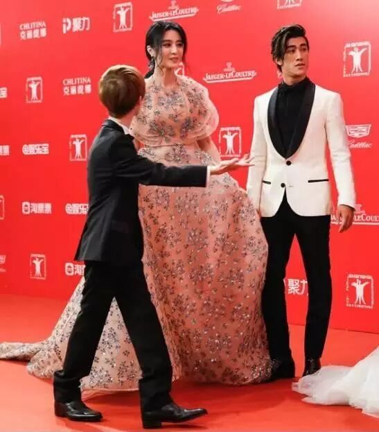 然后范冰冰穿着同一套衣服和郭敬明带领的《爵迹》又走了一次红毯,还和传说中的前男友李治廷同框了。