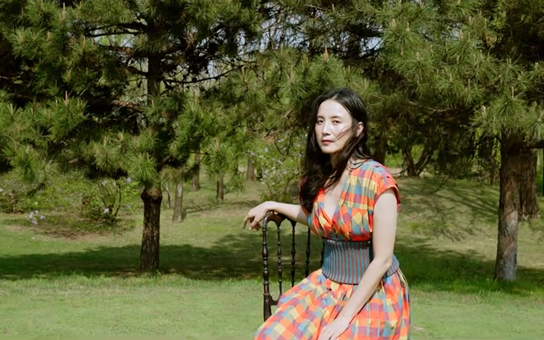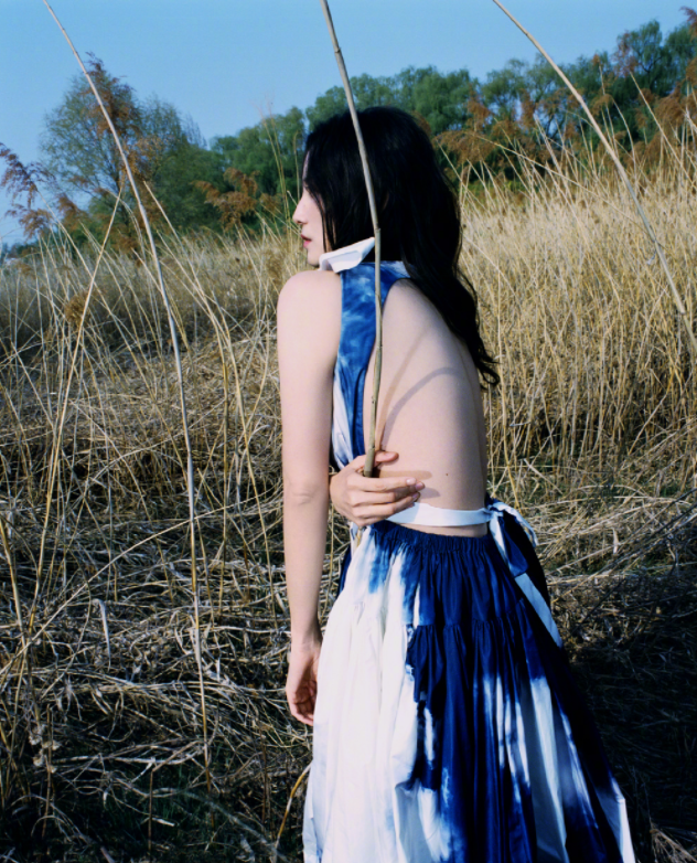 第一张,宋佳穿着蓝白晕染的裙子,既温柔又性感。