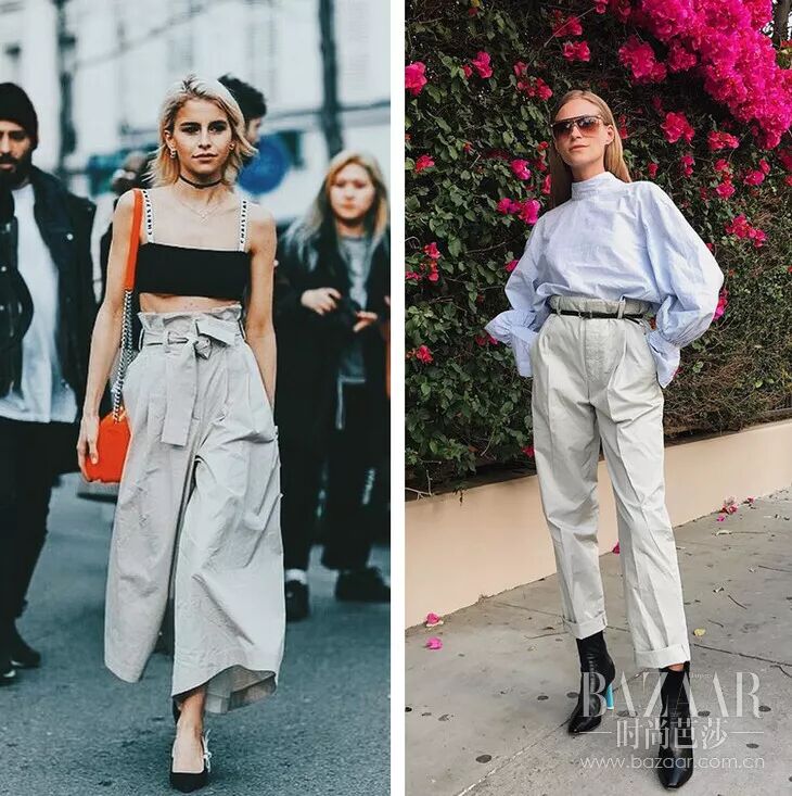 更大胆个性的女生,就可以选择露出你性感苗条的腰!这样一来梨型身材的小粗腿,在穿好衣服后就“消失”啦~但在挑选九分超宽阔腿裤的时候,一定要记得,选择高腰款!选择高腰款!选择高腰款!