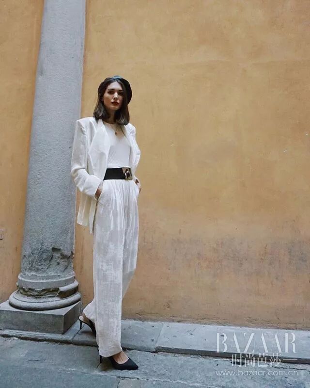 或者是像博主这样搭配一件白衬衫,看上去有一种文艺时髦范!要记住如果身上已经有一件特别亮眼的单品之后,其它单品的选择一定要尽可能做减法,这样才能毫不做作地时髦呢!