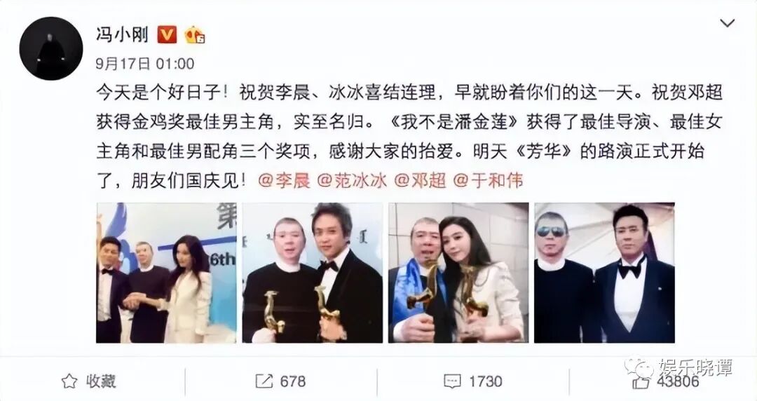 当晚,拿下最佳导演奖的冯小刚还亲自发文道喜了邓超。