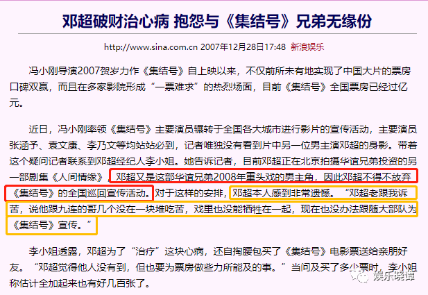 这邓超可倒好,不仅在《集结号》路演宣传的时候经常缺席,