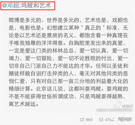 了吐槽《恶棍天使》的黑文,由此可见他内心的不服气。