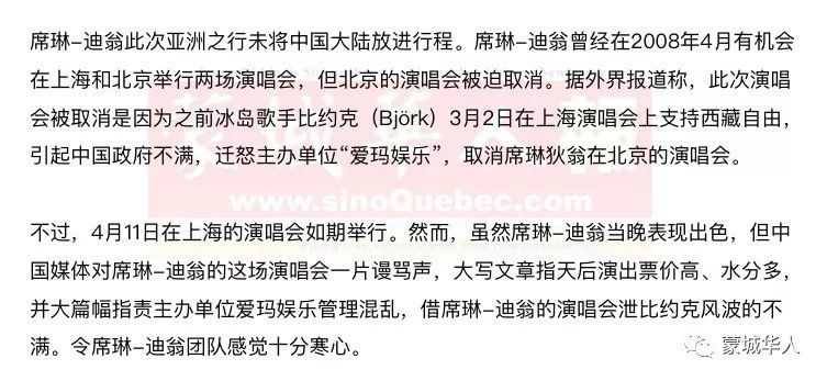 席琳迪翁重启亚洲之行 为什么偏偏不去中国大陆? 蒙城华人 欧美女星 2018-01-16 02:58:16 567 创作不易,用心坚持,欢迎请BaGua喝几杯爱心咖啡!打赏并支持本文 打赏并删除本文 曾在2014年因丈夫René Angélil重病而取消亚洲之行演唱会的魁北克歌坛巨星席琳-迪翁(Céline Dion)于1月12日在拉斯维加斯宣布,将于今年6月重启亚洲之行,在东京、澳门、新加坡、雅加达、台北、马尼拉、孟加拉举行10场演唱会,其中最大型的一场是6月26日在东京举行,计划有55000名歌迷到场。 ↓↓↓ 点击"阅读原文" 【查看更多信息】 创作不易,用心坚持,欢迎请BaGua喝几杯爱心咖啡!打赏并支持本文 打赏并删除本文 感谢您的支持鼓励,我会继续努力的!文章地址:用户邮箱:打赏金额:USDT 请输入数字点击”去打赏“,即可进行打赏支持本文章哦 席琳迪翁 About the Author 蒙城华人 功能介绍:蒙城华人网 www.sinoquebec.com Related Posts 席琳迪翁最后的演出 拉斯维加斯的绝唱 2018-09-25 01:59:36 席琳迪翁重启亚洲之行 为什么偏偏不去中国大陆? 2018-01-16 02:58:16 发表评论
