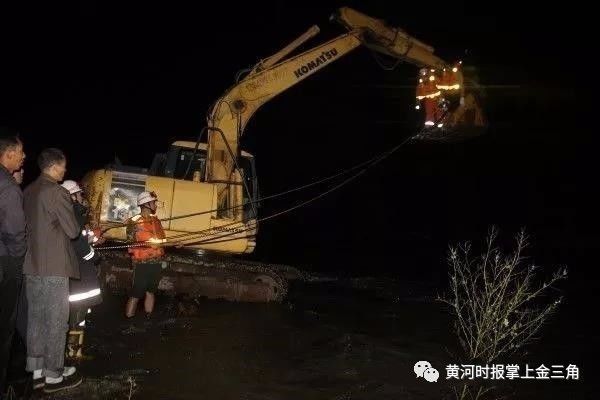 17时20分,消防救援官兵抵达现场,立即成立指挥部,参谋长贺国波和大队长李江龙立即到河边查看现场,商定救援方案。由于现场救援环境极其危险复杂,救援难度极大,经过现场指挥部紧急商议,制定三套救援方案,同时协调县政府应急办调派大型挖掘机赶赴现场。战训参谋璩龙年主动请缨同中队长黄铃带领抢险救援战士准备渡河救援。指挥员利用石头对河道深度进行估测,水深约4米,水情复杂,河水湍急,易造成救援人员伤亡。指挥部经过论证,决定采用救生抛投器将牵救援绳索送达被困人员手中,由被困人员将横渡绳索固定在柳树上,救援人员横渡过河营救被困人员。