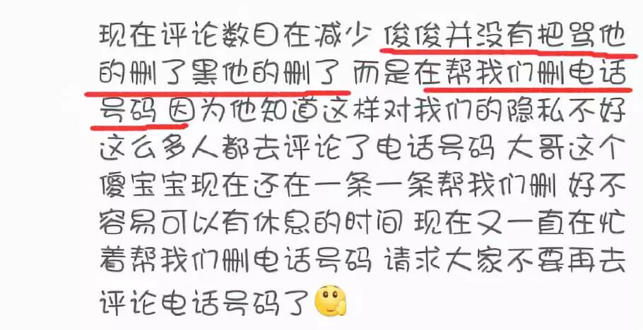 王俊凯怕大家的隐私泄露,就从几万条评论里一条条的删粉丝的号码评论,但是那些骂他黑他的评论他却没有删。