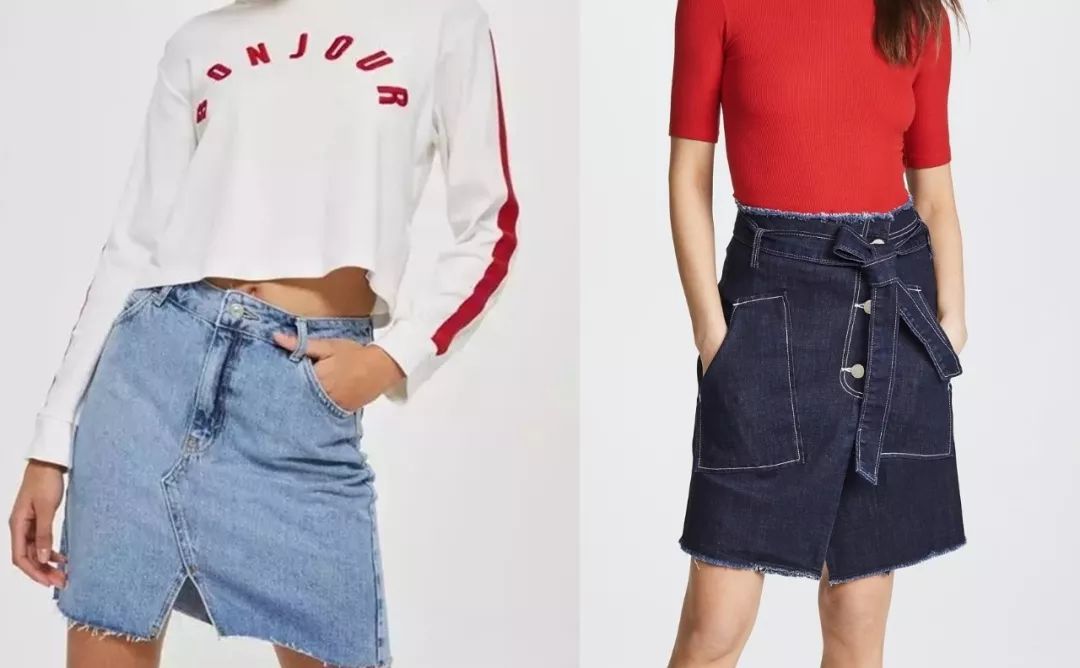 △左:Topshop 牛仔蓝色前后高腰开衩 ¥359