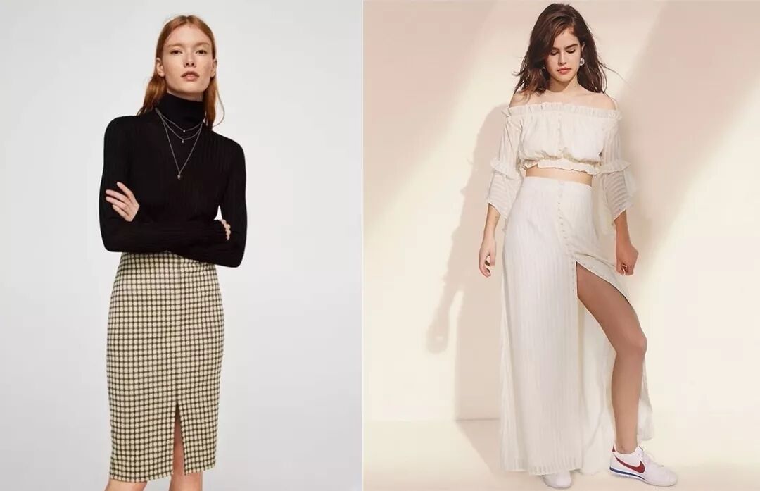 右:Urban Outfitters高腰开衩半身裙 ¥490
