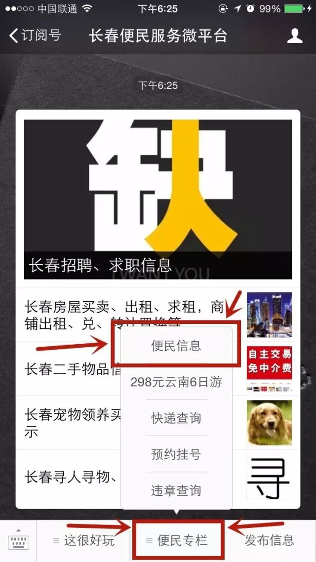 以后大家进入公众号,点击下方菜单【便民专栏】-【便民信息】就可以分类浏览所需的信息,不需要再不停的翻,不停的找了,方便快捷。而这个固定版块还会保留在这里,这里会主要发布一些时事热点。天气预报,正能量,版块仍会保留。