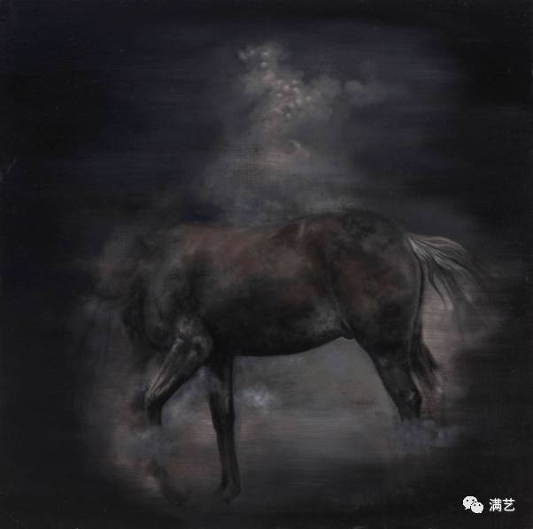 我在吴健的《就有了光》系列看到强烈的魔幻现实主义风格,作品中的马似乎具有某种神性,在颓败、荒墟的环境中释放灵光。那些压抑而昏暗的风景,时而虚幻,时而显现,时而熟悉,时而陌生,永远和观者产生一种时空上的距离感。这些风景似乎是一个个梦境,悲凉而让人恐惧的梦境,一个没有生气的,冰冷的,没有温度的,甚至连空气和水都是污浊的梦境。
