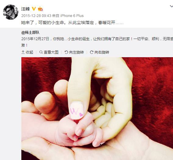 章子怡还通过微博晒和汪峰甜蜜相拥合影,