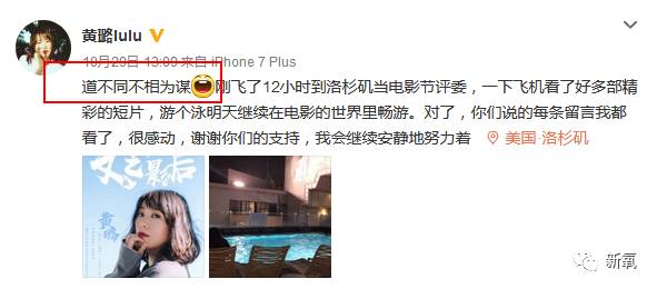 黄璐这边,在事情发生后只发微博说了一句:道不同不相为谋。