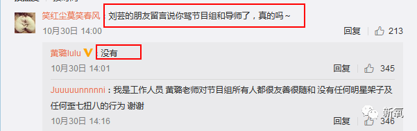 后来有网友向她求证于正讲的是不是真的,她回复:没有。疑似节目组的工作人员也站出来为黄璐说话。
