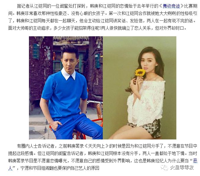 顺便插个话,当年韩庚跟李小璐也在一起过,最近韩庚的前任都很火~