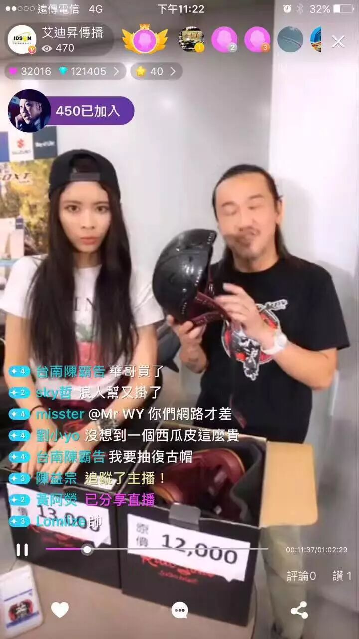 说到台湾著名主持人陈为民,硬汉和他不面之缘,硬汉工作室的台湾代理找台湾艺人直播卖盔,价格12000,13000台币,合计人民币近3000元一枚,真的有心了。