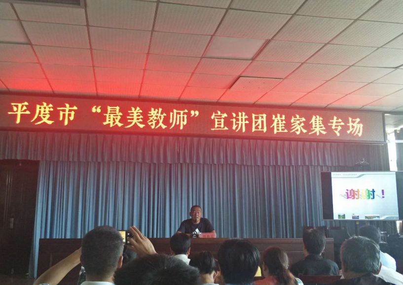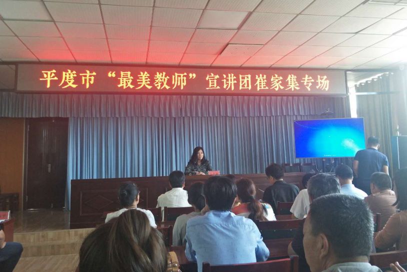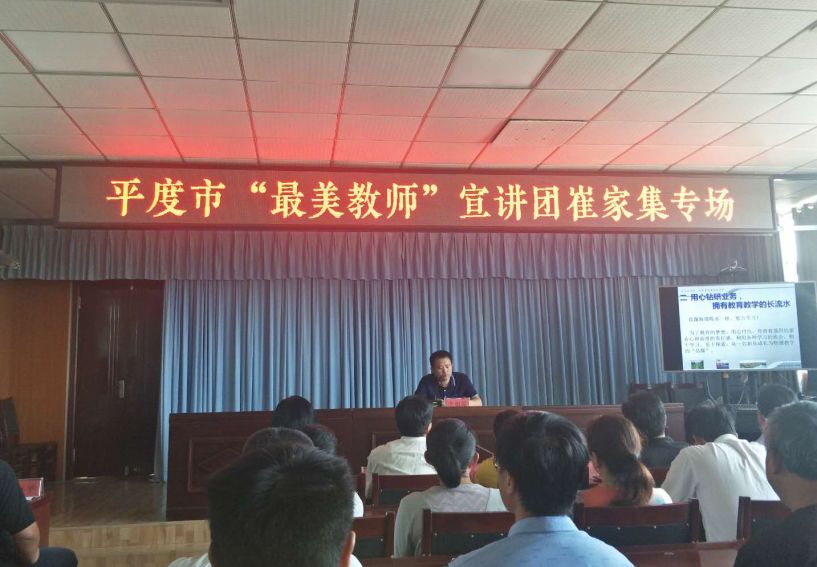 9月18日下午,崔家集中学、崔家集小学、崔家集中心幼儿园全体教师齐聚镇政府二楼会议室,聆听三位来自平度的最美教师的演讲。参加本次活动的还有市教体局党建办主任张丽娜、工会办主任李振涛以及中学校长陶成波、小学校长金海平、幼儿园园长李圣杰。
