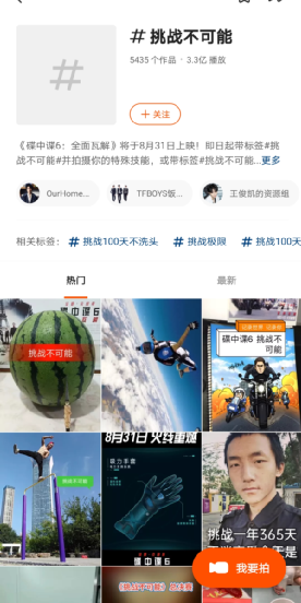 快手就发起了以“挑战不可能”为主题的挑战赛。