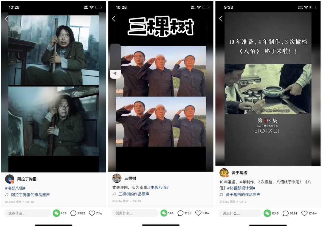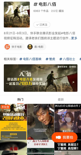 《八佰》上映的时候,在快手进行了征稿活动,鼓励网友二次创作。