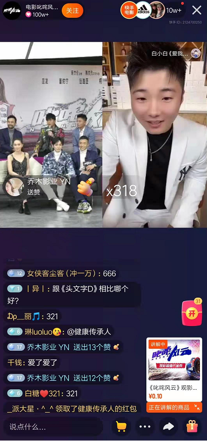 今天晚上,《叱咤风云》的主创人员在快手上举办了一场“线上云首映礼”直播。