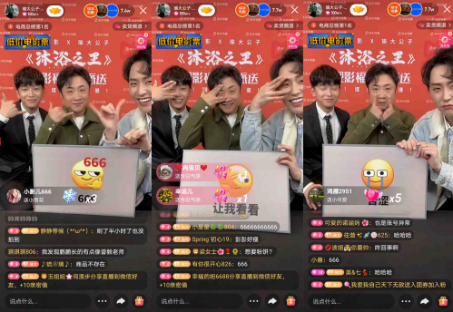 主创还在直播间和歌手白小白连线,两个直播间同时开抢19块的电影票。