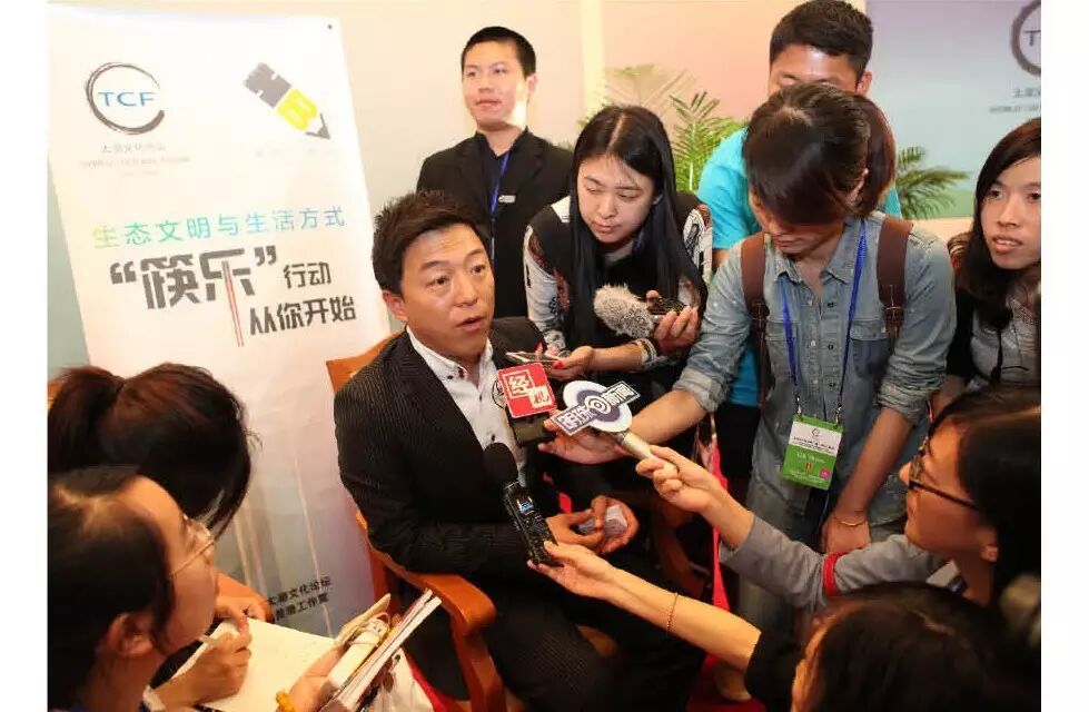 当记者问到为什么这么致力于“筷乐行动”,“国民暖叔叔”说:“之前也参加了许多公益慈善活动,比如少开一天车,关灯一小时等等。有一些活动做得很成功,但有一些最后好像没看到实际的效果。我希望环保不是一个名词,而是一个动词,大家都能去做。我觉得筷子这个切入点挺好,而且也能了解我们中国人使用一次性筷子的整体情况。我希望把这个活动做得长远一点,慢慢来,从一点一滴实际的事情开始做。”